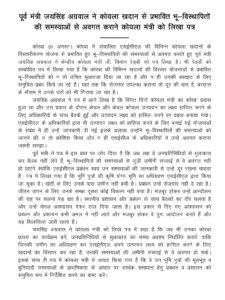 पूर्व मंत्री जयसिंह अग्रवाल ने कोयला मंत्री को लिखे पत्र में कहा है कि जब भी उनका कोरबा प्रवास का कार्यक्रम बने, जनप्रतिनिधियों से मुलाकात का समय अवश्य निर्धारित करावें ताकि जिनकी जमीन का अधिग्रहण कर एसईसीएल अपने उत्पादन लक्ष्य को हासिल करने के लिए खदानों का विस्तार कर रहा है, उनकी समस्याओं की जमीनी सच्चाई से वे अवगत हो सकें। इसके साथ ही पत्र में कोयला मंत्री से आग्रह किया गया है कि वे उन भूमि पुत्रों की मूलभूत व बुनियादी समस्याओं के प्राथमिकता के आधार पर सार्थक समाधान हेतु प्रबंधन व प्रशासन को समुचित रूप में निर्देशित करने का कष्ट करें।
