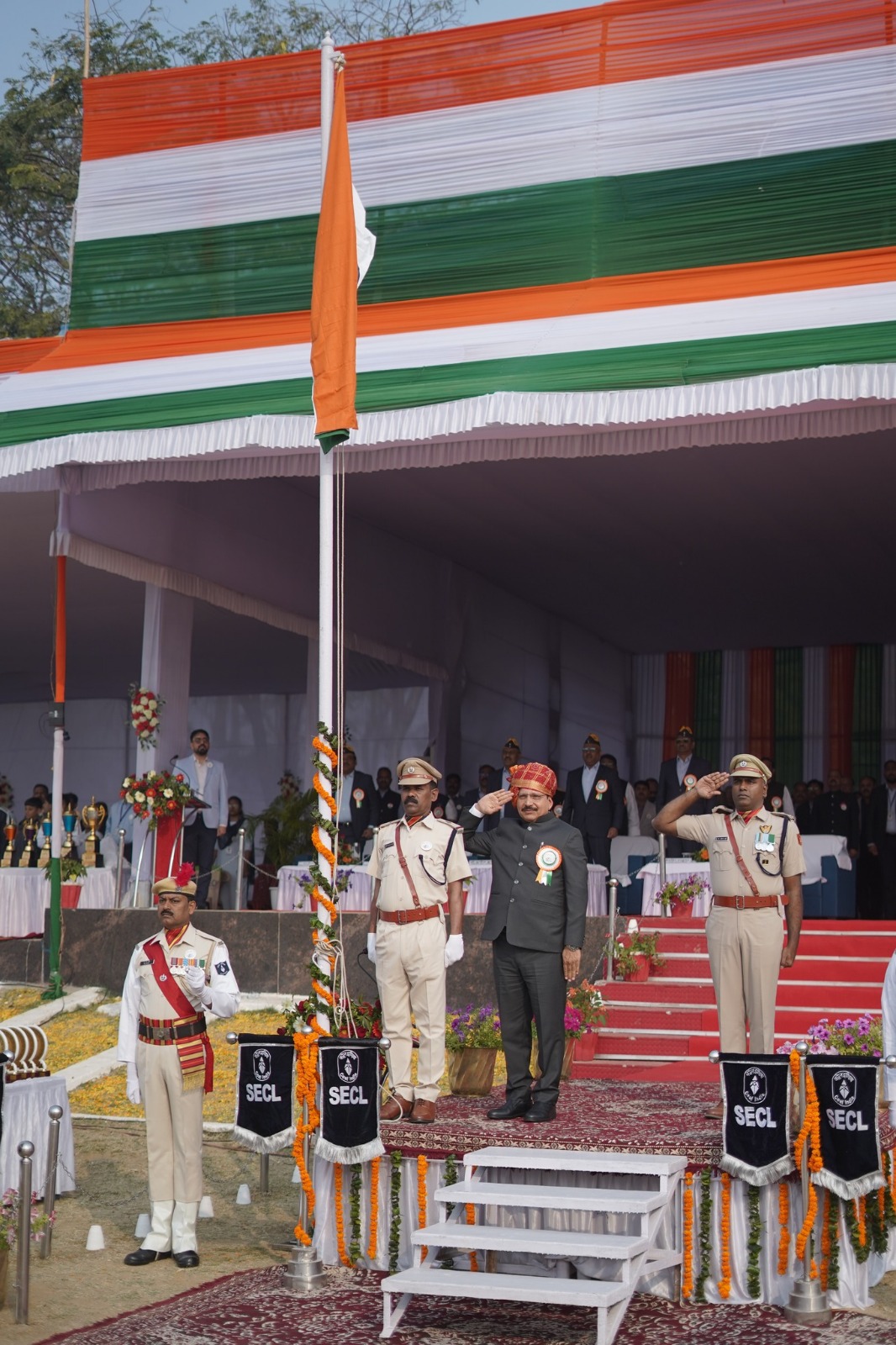 एंकर-एसईसीएल मुख्यालय, बिलासपुर स्थित वसंत विहार ग्राउंड में आज 77वां गणतंत्र दिवस समारोह गरिमा, अनुशासन एवं देशभक्ति के वातावरण में हर्षोल्लास के साथ मनाया गया। समारोह के मुख्य अतिथि एवं एसईसीएल के अध्यक्ष-सह-प्रबंध निदेशक हरीश दुहन ने राष्ट्रीय ध्वज फहराया तथा परेड की सलामी ली।