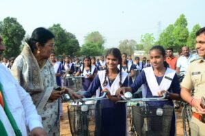 कोरबा(कोरबा वाणी)-सरकार तुंहर द्वार कार्यक्रम के अंतर्गत विकासखण्ड करतला के ग्राम पंचायत रामपुर में वृहद समाधान शिविर आयोजित किया गया। इस शिविर में एक ही दिन में पांच हजार 874 लोगों को फौती, नामांतरण, राशन कार्ड, पेंशन, दिव्यांगता प्रमाण पत्र, किसान क्रेडिट कार्ड आदि शिविर स्थल में ही बनाकर ग्रामीणों को दी गई। शिविर में कोरबा लोकसभा क्षेत्र की सांसद ज्योत्सना महंत एवं कलेक्टर रानू साहू भी शामिल हुई। सांसद महंत ने शिविर में शामिल जनप्रतिनिधियों के साथ विभिन्न विभागों के स्टालों का अवलोकन किया। उन्होंने स्कूली छात्राओं को सरस्वती सायकिल योजना के तहत साइकिलों का वितरण किया। साथ ही दिव्यांगजनों को दिव्यांगता प्रमाण पत्र, महिला समूहों को ऋण का चेक किसानों को कृषि उपकरण, मछली जाल, किसान क्रेडिट कार्ड, ई-श्रमिक कार्ड तथा तेन्दुपत्ता हितग्राहियों को सामाजिक सहायता योजना के अन्तर्गत सहायता राशि का चेक प्रदान किया। सांसद ज्योत्सना महंत ने नागरिकों को संबोधित करते हुए कहा कि जनता की समस्याओं का समाधान करने के लिए वृहद समाधान शिविर का आयोजन किया जा रहा है। समाधान शिविर के माध्यम से लोगों के द्वार तक राशन, पेंशन आदि सुविधाओं का लाभ मिल रहा है। शिविर का उद्देश्य नागरिक गणों को शासकीय योजनाओं से लाभान्वित करना और उनकी सभी समस्याओं का हल करना है। उन्होंने कहा शिविर के माध्यम से घर-घर सर्वे करके आवेदन लेकर नागरिकों को शिविर में लाभान्वित किया जा रहा है। नागरिकों को फौती, नामांतरण, बंटवारा आदि राजस्व प्रकरणों की सुविधाओं का लाभ शिविर के माध्यम से मिल रहा है। शिविर के माध्यम से नागरिकों को राशन कार्ड, पेंशन निराकरण, किसान किताब आदि प्रदान करना ही प्रशासन का उद्देश्य है। कलेक्टर रानू साहू ने समाधान शिविर में सेवाओं का लाभ लेने आए नागरिकों को सम्बोधित करते हुए कहा कि सरकार तुंहर द्वार कार्यक्रम के तहत समाधान शिविर आयोजित किया जा रहा है। उन्होंने कहा कि जाति प्रमाण पत्र, जॉब कार्ड, वनाधिकार पट्टा, दिव्यांगता प्रमाण पत्र का लाभ सभी पात्र लोगों को देना ही समाधान शिविर का उद्देश्य है। कलेक्टर ने कहा कि शिविर के पहले घर-घर सर्वे करके लोगों की समस्याओं से संबंधित आवेदन लेकर शिविर में नागरिकों को सेवाएं प्रदान की जा रही है। इस दौरान पुलिस अधीक्षक भोजराम पटेल, जिला पंचायत सीईओ नूतन कंवर, जनप्रतिनिधि सुरेन्द्र प्रताप जायसवाल, हरीश परसाई, आस-पास पंचायतों के सरपंच गण, समस्त विभागीय अधिकारीगण सहित भारी संख्या में नागरिकगण मौजूद रहे।